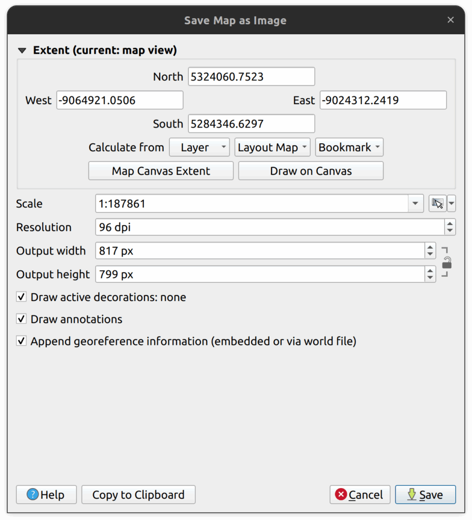 2. In the Save Map as Image dialog box, keep all the default values and click Save.