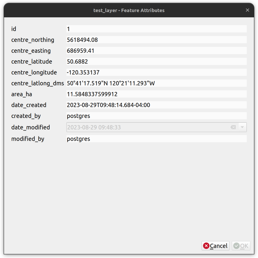 1. Create a new QGIS project and load the layer trigger_function_tutorial.test_layer over an OSM basemap.