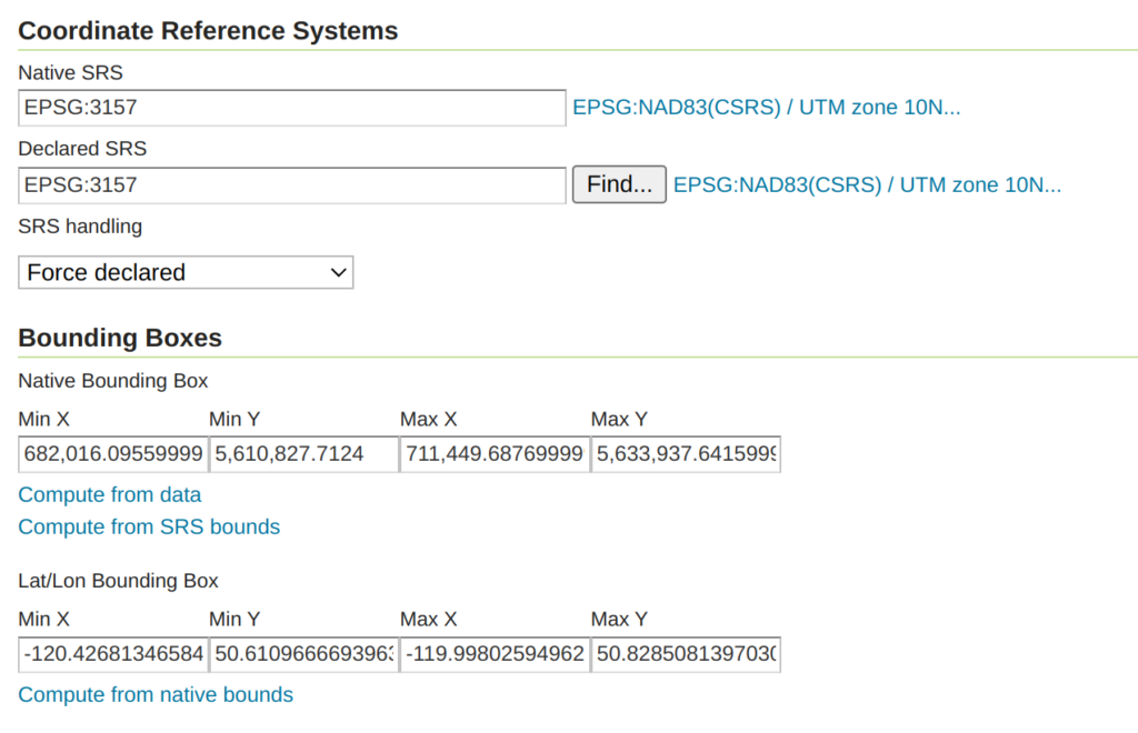 - Lat/Lon Bounding Box: Click Compute from native bounds.