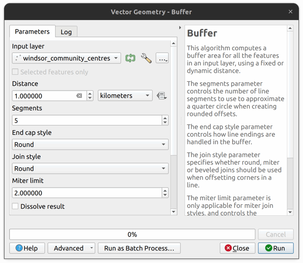 4. In the Buffer tool, set the following parameters: